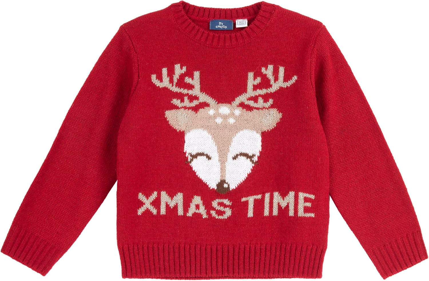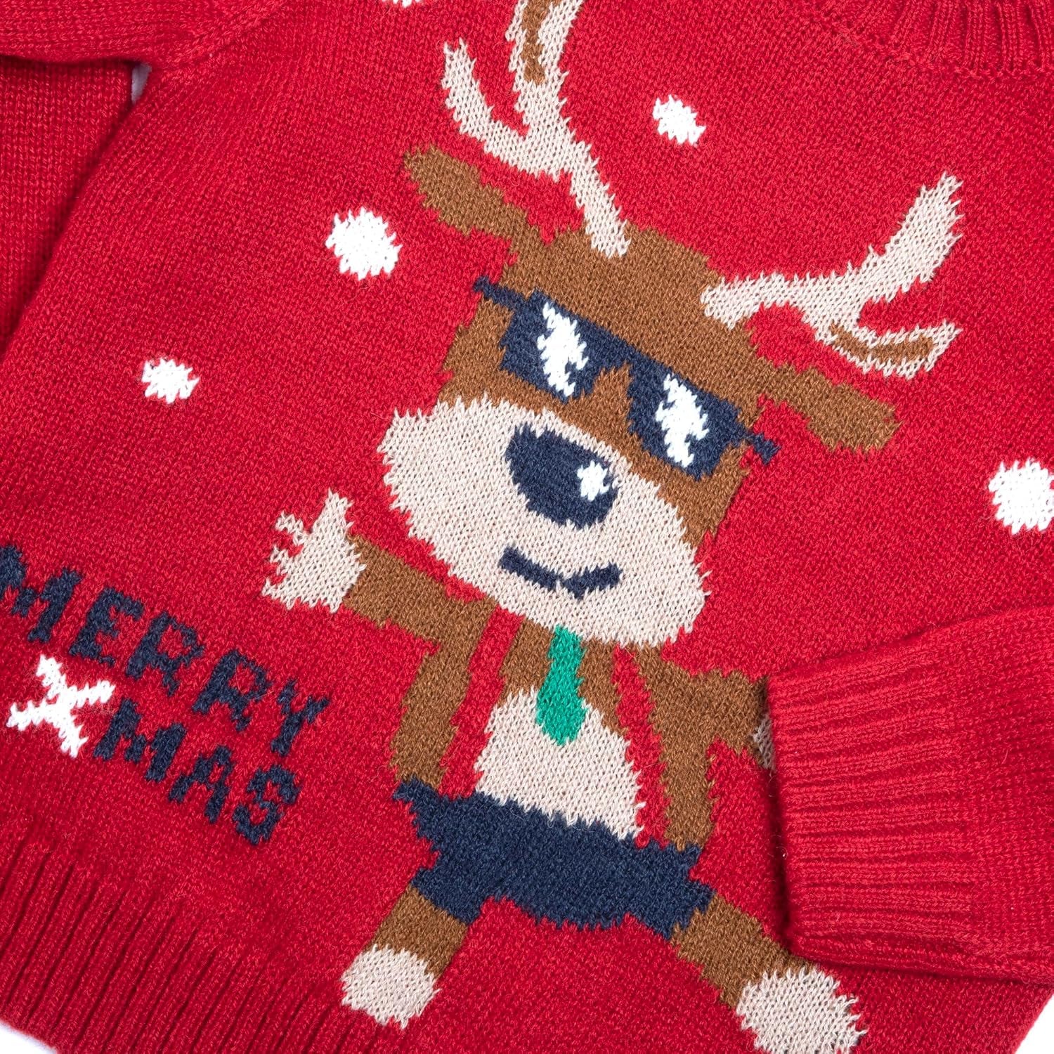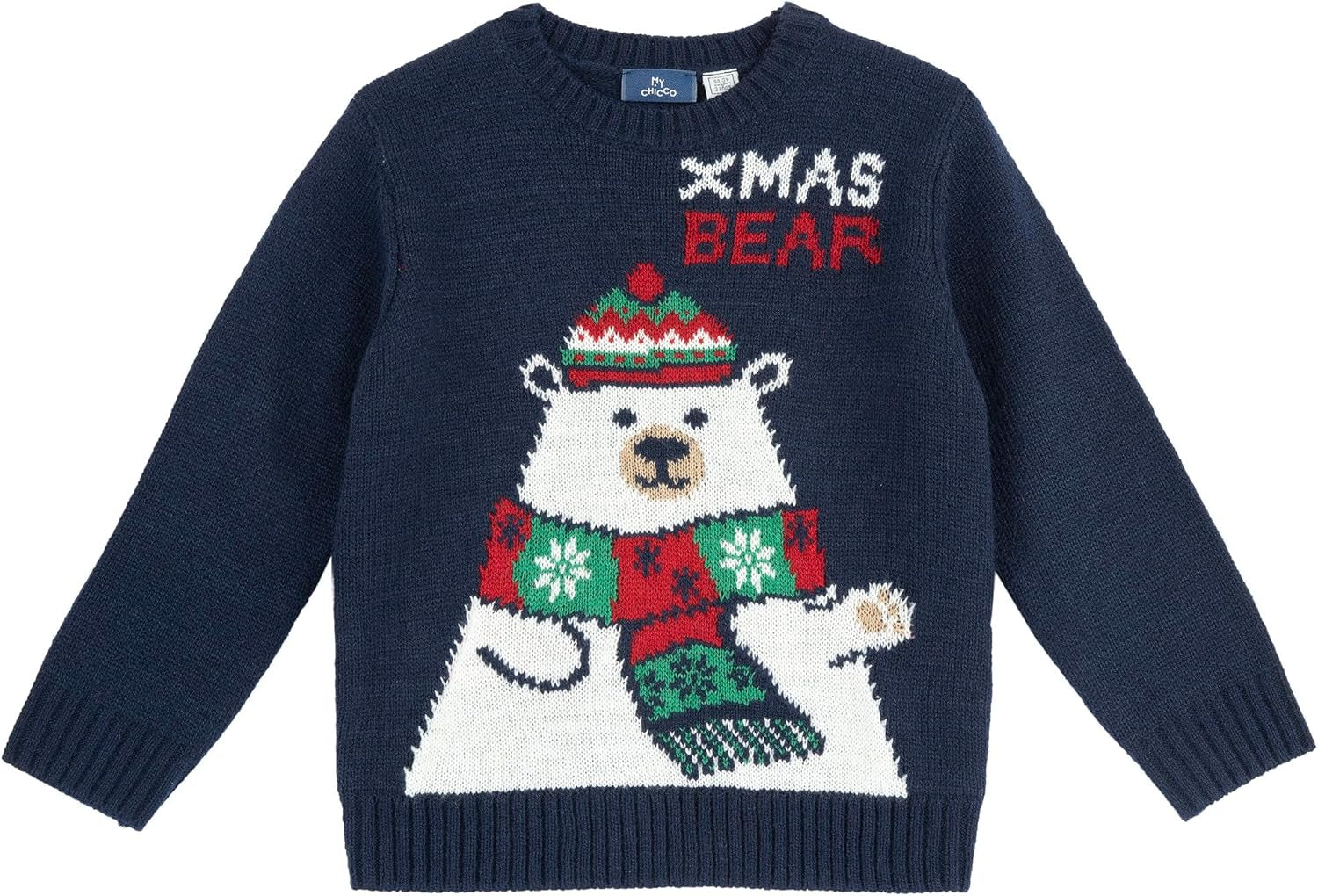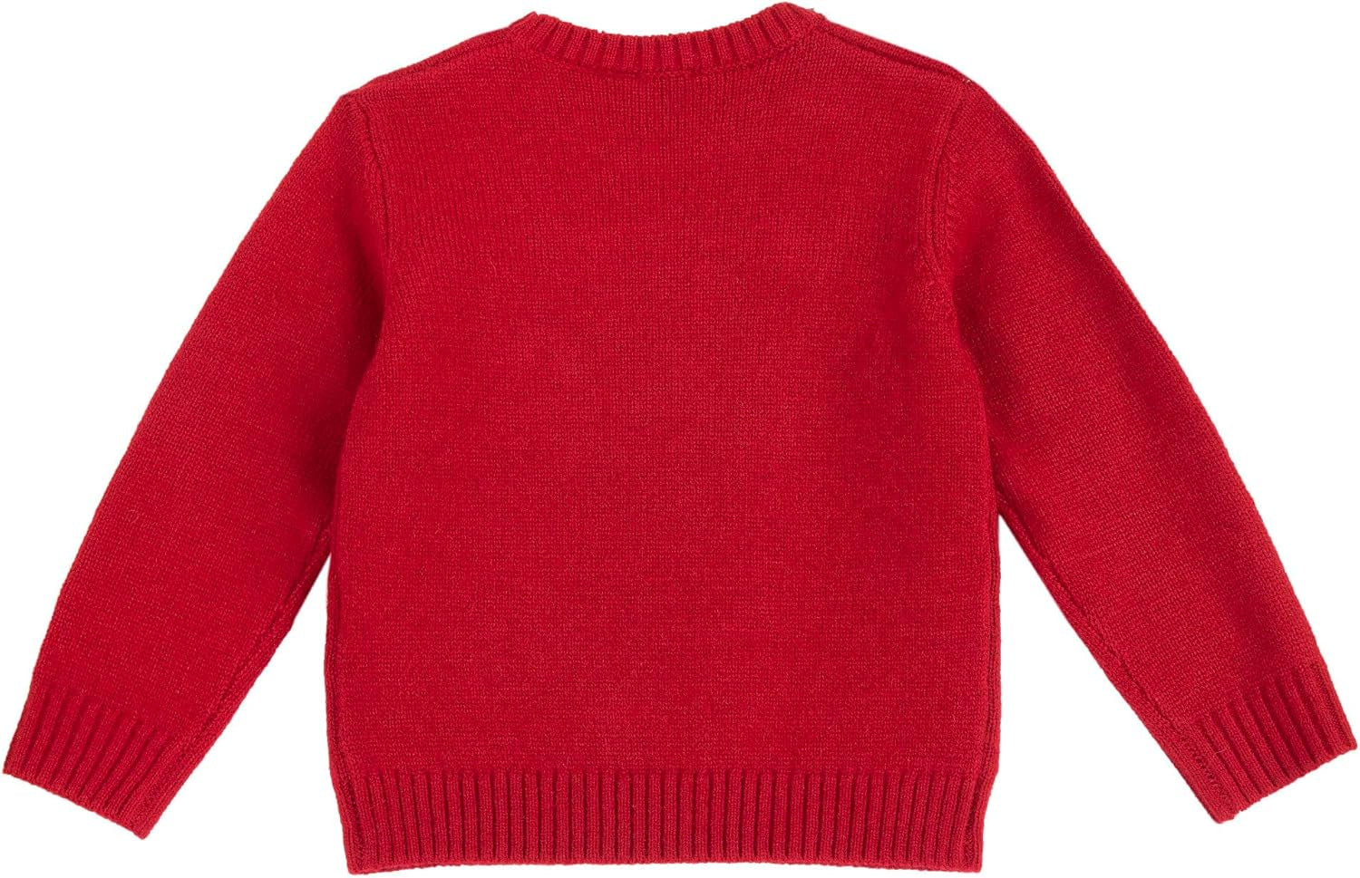 Suéter adecuado para niños, con cuello redondo y manga larga. Tiene un diseño bordado en el pecho y es óptimo para días fríos.
