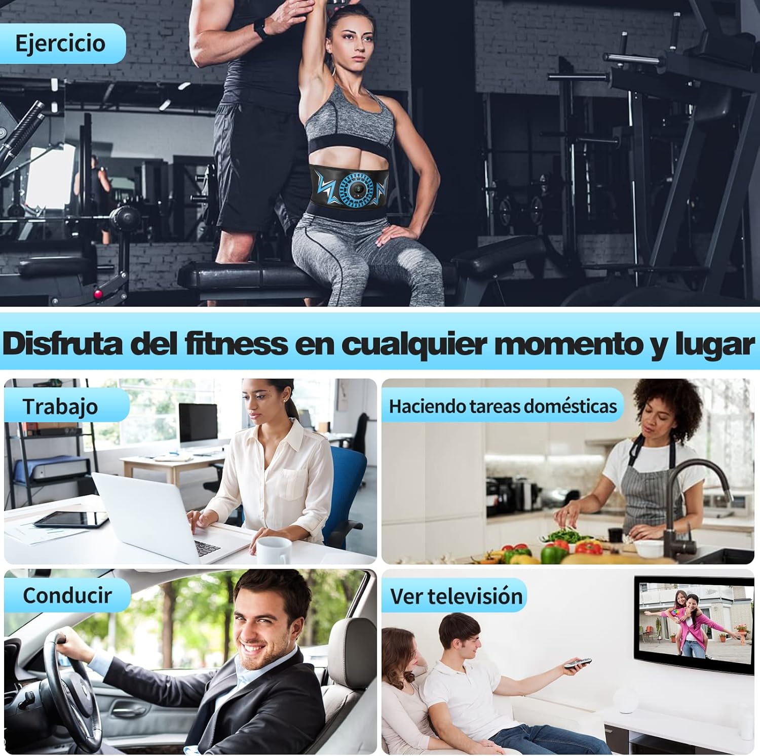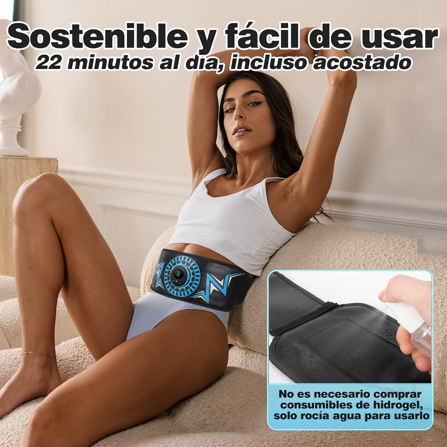 Sostenible y PortÁtil - Es simple y fácil de mantener, todo lo que necesita hacer es poner este cinturón después de rociar agua. Construya músculo incluso mientras está acostado. Se puede utilizar en cualquier momento y en cualquier lugar. Ya sea que esté trabajando, viajando o en movimiento, puede usar nuestro electroestimulador muscular para mantenerse en forma y reducir la obesidad
