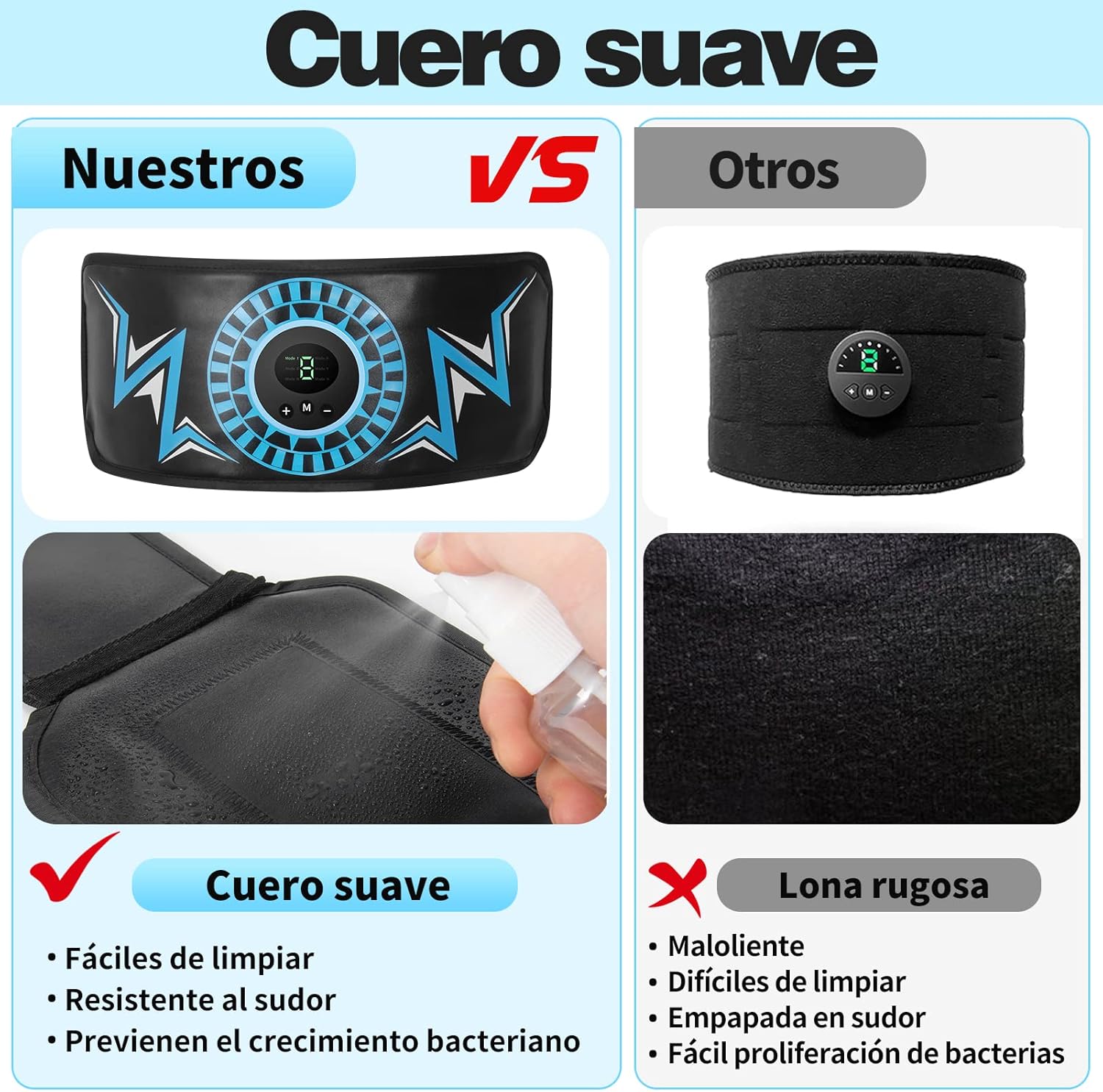 Cuero Suave y Electrodos Más Anchos - Nuestro abdominales electroestimulacion mejorado cuenta con cuero de alta calidad y una mayor cobertura de electrodos para ofrecer una comodidad y rendimiento incomparables. Nuestro cuero suave y cómodo es superior a la lona áspera de otros vendedores. Nuestra área de electrodos ampliada proporciona una mejor cobertura y asegura un contacto máximo con la piel para una estimulación óptima