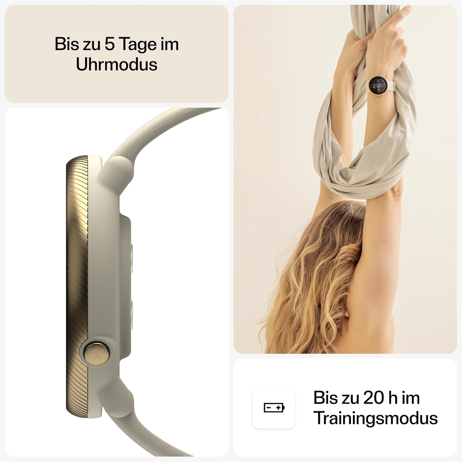 - El reloj como entrenador personal Las instrucciones de entrenamiento diario personalizadas, el programa de carrera, el análisis del sueño y el seguimiento de la recuperación te ayudan a entender mejor el cuerpo y a vivir de forma saludable